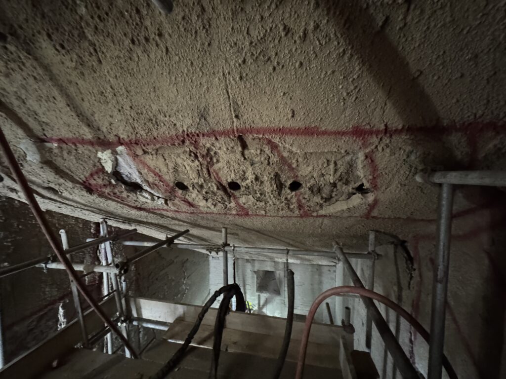 This was particularly important on this project, where maintaining the condition of the structure beneath the refractory layer was essential. The combination of robotic precision and manual detailing ensured a clean finish, ready for the next phase of work.
